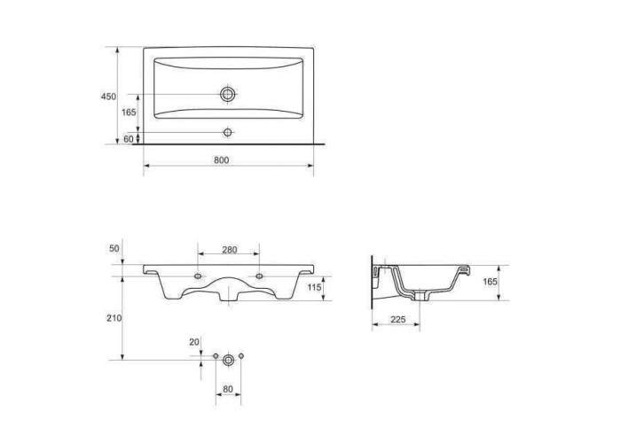 Керамический умывальник COMO 80 с отверстием для смесителя и переливом предназначен для установки с мебелью серий OLIVIA, BIANCO и MELAR или непосредственно для монтажа на стене с декоративным сифоном.