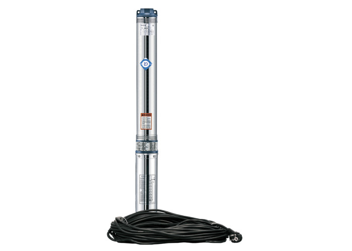 Насос центробежный 1.8кВт H 197(152)м Q 55(35)л/мин Ø102мм 20м кабеля mid DONGYIN (778448)Область применения Насосы данной серии предназначены для перекачивания чистой воды и могут применяться: для бытового использования при водоснабжении из скважин и резервуаров (обязательная установка кожуха охлаждения), для перекачивания воды в резервуары, для оросительных систем, для автоматической подачи воды совместно с небольшими резервуарами при использовании управляющей автоматики (управляющие реле, контролеры давления). Насосная часть: корпус насосной части: нержавеющая сталь, выходной фланец: чугун с антикоррозийной обработкой, вал насосной части: нержавеющая сталь, муфта вала: нержавеющая сталь Рабочее колесо: технополимер, шайба фасонная разделительная: технополимер, диффузор: технополимер, электродвигатель, тип двигателя: асинхронный, маслонаполненный, со встроенной в обмотку термозащитой обмотка статора: медь, корпус электродвигателя: нержавеющая сталь, вал двигателя: нержавеющая сталь, механическое уплотне