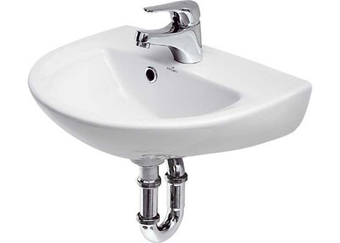 Умивальник PRESIDENT 45. Країна виробника: Польща. Виробник: Cersanit. Умивальник PRESIDENT 45 з отвором для змішувача і переливом призначений для установки на стіні з декоративним сифоном. Матеріал: санітарний фаянс. Колір: білий (Cersanit White). Перелив: так. Отвір під змішувач: по центру. Спосіб монтажу: на стіну. Форма: закруглена. Ширина: 44,5 см. Глибина: 35 см. Вага брутто: 9,7 кг. Гарантія: 10 років.