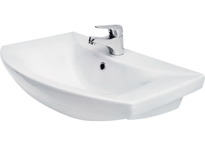Умивальник меблевий OMEGA 65. Країна виробництва: Польща. Виробник: Cersanit. Керамічний умивальник OMEGA 65 з отвором для змішувача і переливом призначений для установки з меблями серії ALPINA або безпосередньо для монтажу на стіні з декоративним сифоном. Матеріал: санітарний фаянс. Колір: білий (Cersanit White). Перелив: так. Отвір під змішувач: по центру. Спосіб монтажу: на стіну, на шафку. Форма: прямокутна. Ширина: 64.5 см. Глибина: 43.5 см. Вага брутто: 17,5 кг. Гарантія: 10 років.