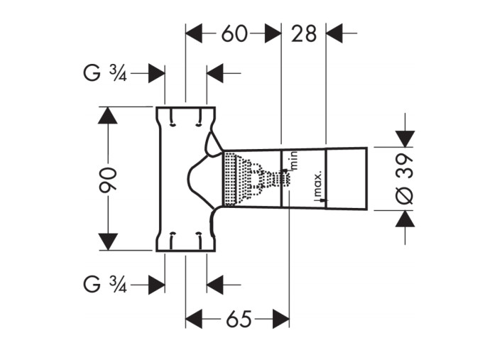 Hansgrohe Скрытая часть запорного вентиля шпиндельная, скрытый монтажРасход воды: 130 л/мин