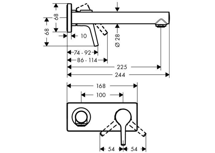 Смеситель для раковины, однорычажный, встраиваемый в стену, хром