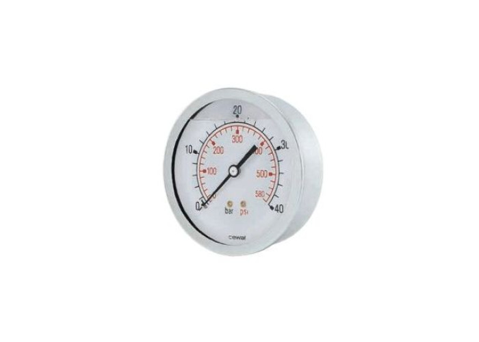 1) Манометри вертикальні і фронтальні: ∅40, ∅50, ∅63, ∅80, ∅100 з радіальним/заднім підключенням призначені для вимірювання тиску рідких та газоподібних рідин, які не є надто в'язкими, застиглими або корозійними для сплавів з міді та олова. Протиударний корпус із пластика (RP) або сталі (RM). Небитке скло з метакрилату. З'єднання - латунь. Чутливий елемент - трубка Бурдона з мідного сплаву. Подвійна шкала Bar/PSI. Клас точності 2,5.