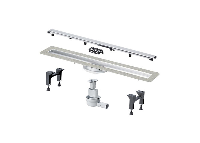 комплектация: фланец с песчаным покрытием, решетка глянцевая, монтажные опоры, съемное устройство для защиты от неприятного запаха из системы канализации, возможность прочистки отводящего трубопровода, поворотный выпуск DN40, переход на DN50, сетчатый фильтр