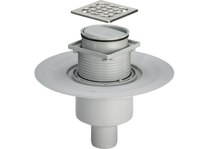 Трап с "сухим" затвором, скрытый монтаж, диаметр 50 мм, длина 85 мм, квадратный, вертикальное подключение к канализации, для ванной комнаты, серый