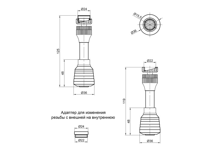 В комплектацию входит адаптор для изменения резьбы с внешней на внутреннюю.