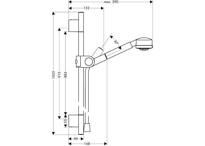 Душевой набор настенный, мультирежимный. Диаметр - 100 мм, длина - 900 мм. с коническим передвижным держателем из металла. Шланг 160 см. Душевая насадка. Хромированная поверхность