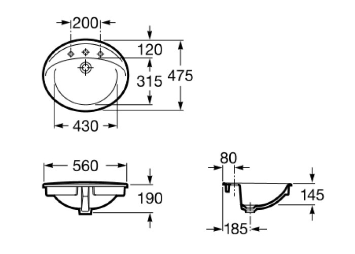 ALOA умывальник 56*47,5 см, с отверстием под смеситель, с переливом