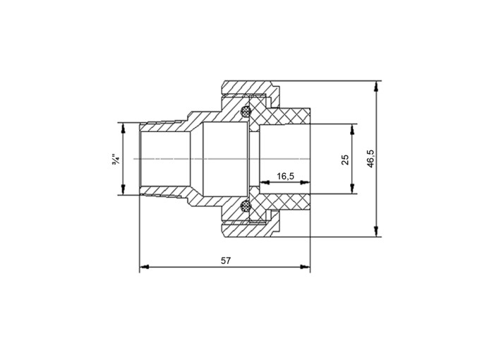 Американка PPR Blue Ocean 25х3/4" изготовлена из латуни, благодаря которой устойчива к высоким температурам, с наружной резьбой с условным проходом 25 мм и диаметром резьбы 3/4". Конструкция изделия состоит из двух штуцеров, шестигранной гайки и прокладки для обеспечения герметичности соединения труб.