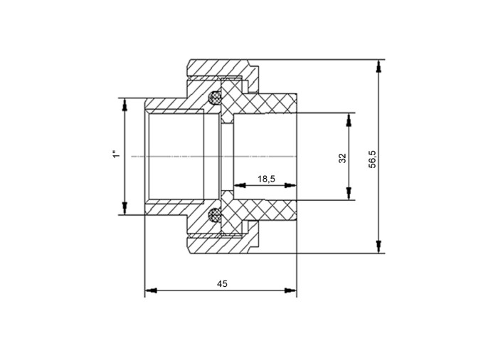 Американка PPR Blue Ocean 32х1" изготовлена из латуни, благодаря которой устойчива к высоким температурам, с внутренней резьбой с условным проходом 32 мм и диаметром резьбы 1". Конструкция изделия состоит из двух штуцеров, шестигранной гайки и прокладки для обеспечения герметичности соединения труб.