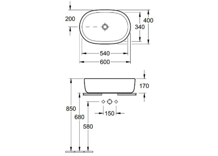 ARCHITECTURA умывальник для установки на столешницу 60*40 см, без отверстия под смеситель, скрытый перелив