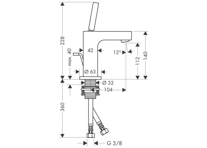 Axor Citterio Смеситель для раковины, однорычажный Выступ 104 mm, обычная струя, расход воды: 5 л/мин, подходит для работы с проточным водонагревателем