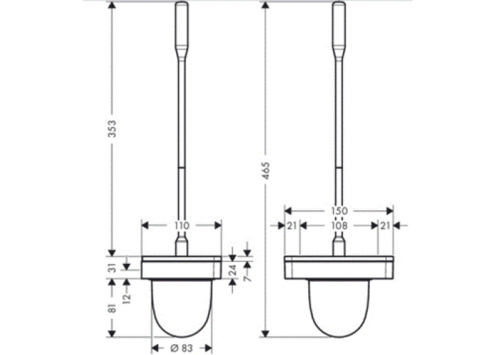 Ёршик для унитаза с металлическим держателем, без крышки, монтаж подвесной