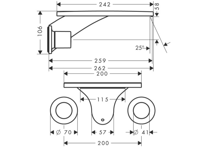 Axor Massaud Смеситель для раковины, двухвентильный, на 3 отверстия, настенный Выступ 262 mm, ливневая струя, расход воды: 4 л/мин, подходит для работы с проточным водонагревателем