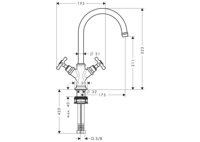 Axor Montreux Смеситель для раковины, однорычажный Выступ 175 mm, обычная струя, расход воды: 5 л/мин, поворотная область 120°