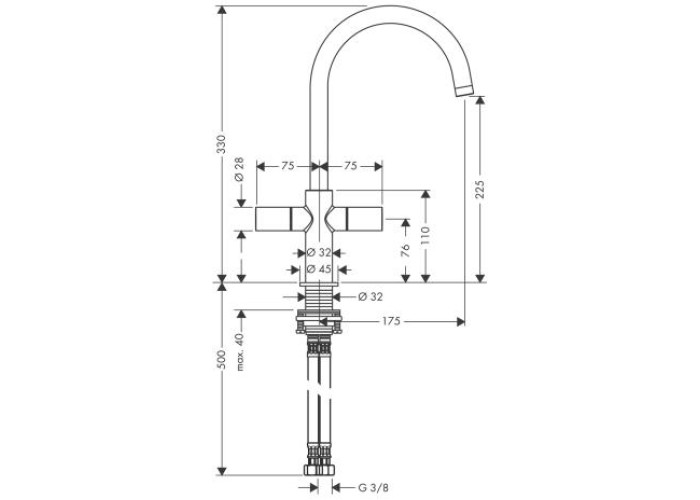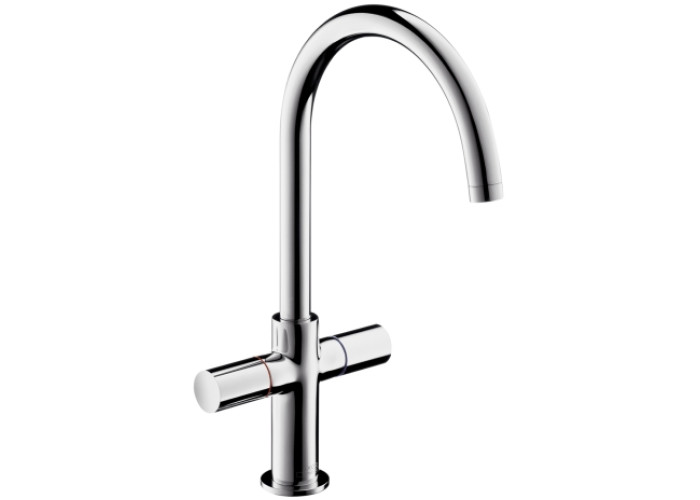 Смеситель для кухни, двухвентильный, настольный, донный клапан, поворотный излив, хром.