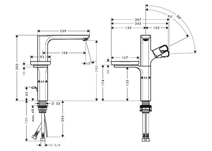 Смеситель для раковины в форме таза, керамический узел смешивания, расход воды 5 л/мин, защита от загрязнений QuickClean, донный клапан, 1¼’, подходит для работы с проточным водонагревателем, с мыльницей и стаканом для зубных щеток, ограничитель температуры воды