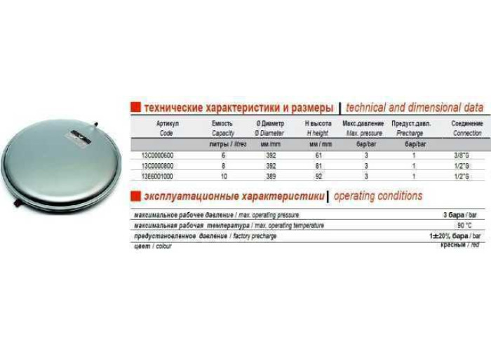 Бак Zilmet oem-pro для монтажу в котли плоский Арт. 521 6л 3bar D. 392 СІРИЙ 1/2"