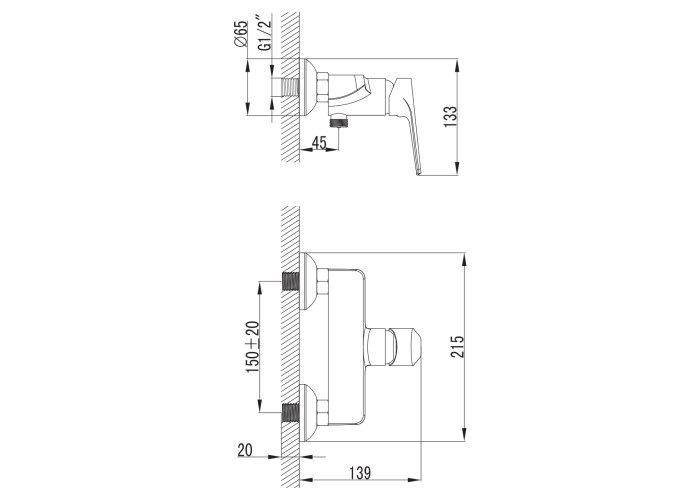 Смеситель для душа настенный, однорычажный, хром