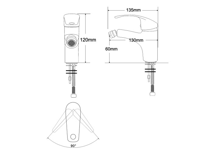BARON смеситель для биде однорычажный, хром, 40 мм, шланги подключения воды, латунь