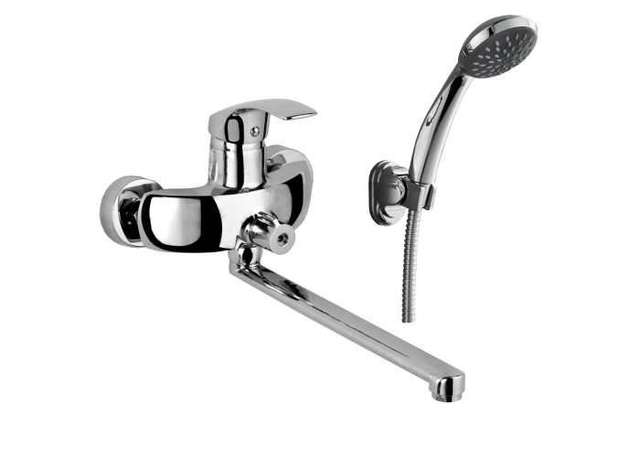 Однорычажный смеситель для ванны, излив 350 мм, хром, в комплекте: шланг, лейка, держатель
