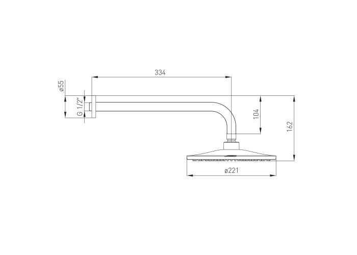 • Диаметр лейки верхнего душа - 221 мм