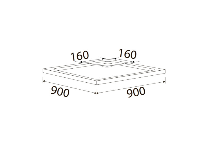 Поддон квадратный акриловый 90х90х5 см, диаметр сливного отверстия 95 мм,Опционально можно приобрести сифон 10-22-905drain, диаметр сифона 110 мм