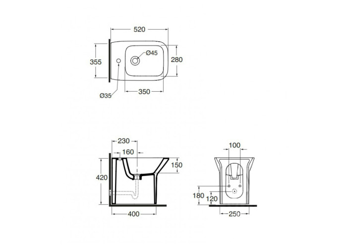 Біде Azzurra Prua PRU500CO1 виготовлено з кераміки в білому кольорі та має матову поверхню з антибактеріальним покриттям для захисту від мікробів. Завдяки своїм формі та кольору воно чудово доповнить інтер‘єр в стилі класика або модерн. Виріб обладнано отвором зливник-перелив для запобігання переливанню води через край та отвором під змішувач. Біде монтується в підлогу та ставиться впритул до стіни, тому не забере багато місця навіть в маленьких приміщеннях.