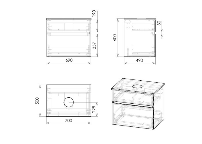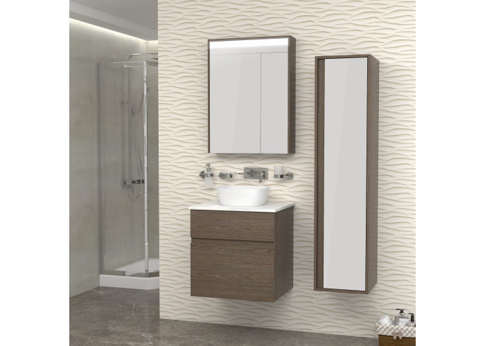 Размеры: 600*600*460 Материал корпуса - ламинированный ДСП, покрытый глянцевой пятислойной краской Материал фасада - ламинированный МДФ, покрытый глянцевой пятислойной краской Комплектуется керамическим накладным умывальником