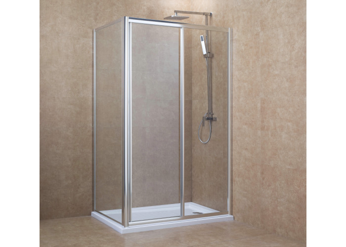 Боковая стенка 900*1950 мм, для комплектации с дверьми 599-153, цвет профиля хром, толщина стекла 6 мм.