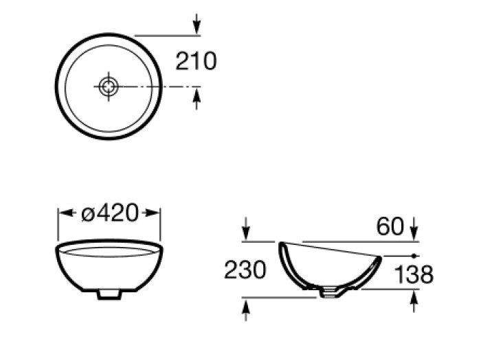 BOL умывальник 420, без отверстия под смеситель, без перелива.