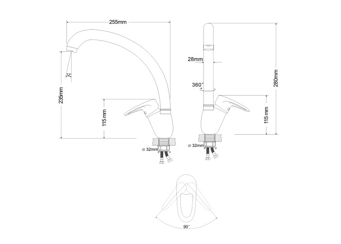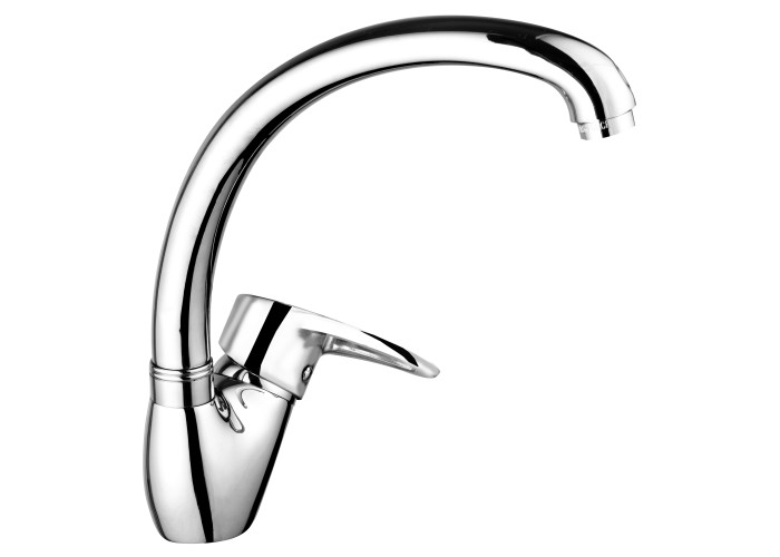Однорычажный смеситель для кухни, хром, поворотный высокий излив. Материал - латунь.