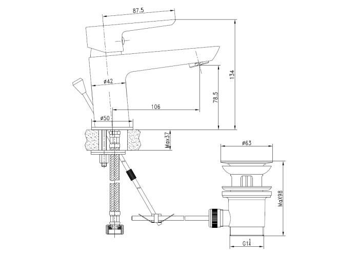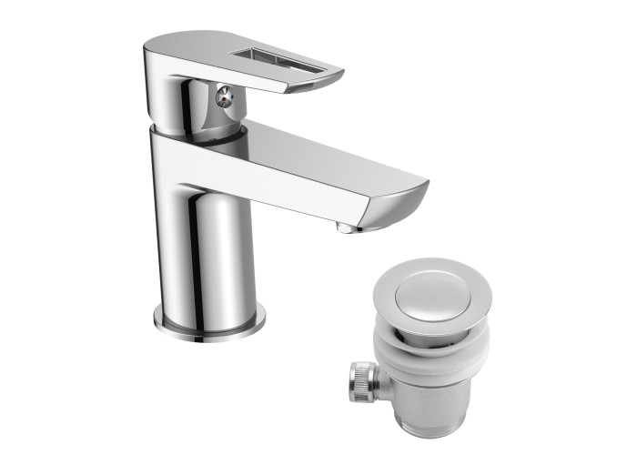 Смеситель для раковины с донным клапаном, хром, 35 мм, настольный, однорычажный