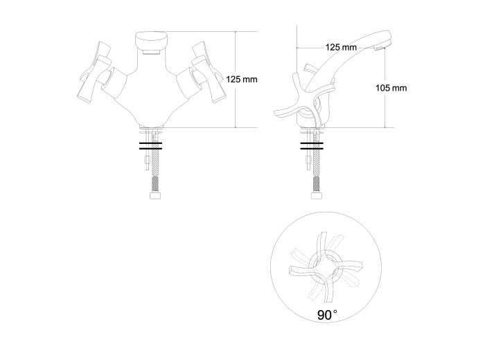Двухвентильный смеситель для раковины, двухвентильный, крестовые ручки, хром