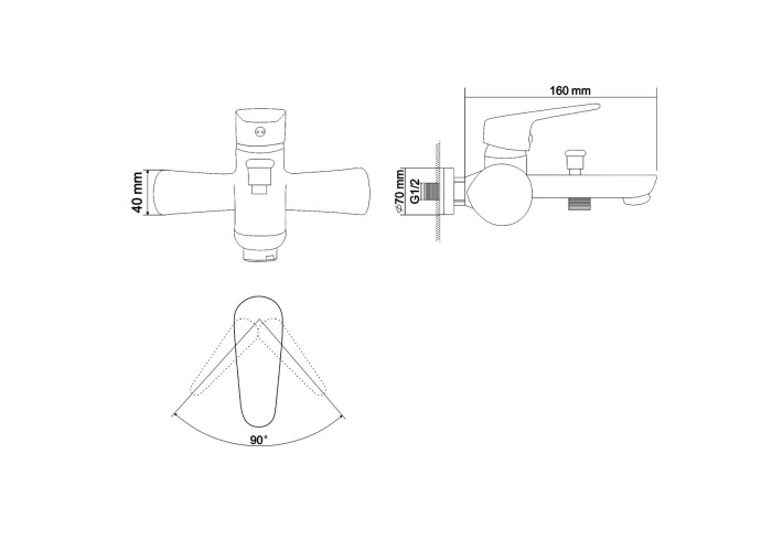 BUTTERFLY смеситель для ванны однорычажный, хром 35 мм