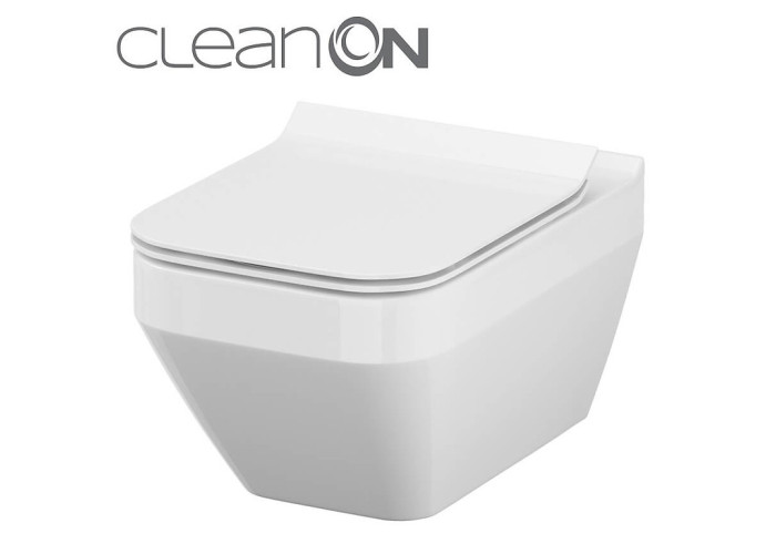 Унітаз підвісний CREA CLEAN ON SQUARE з інноваційною технологією CleanOn. Завдяки цій технології вода ефективно миє всі внутрішні поверхні чаші, а унітаз довше залишається більш чистим та гігієнічним. Чаша призначена для економного промивання води 3 / 5л.