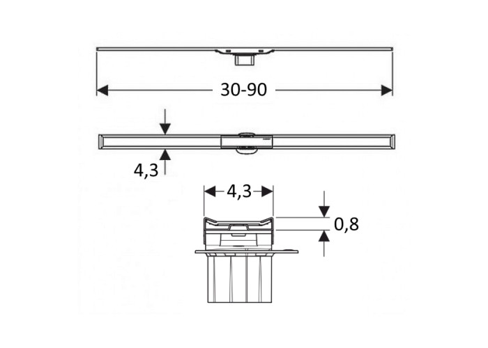 CLEANLINE20 дренажный канал, L30-90см, полированный/матовый металл