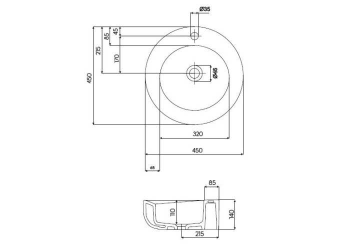 COCKTAIL умывальник встраиваемый на столешницу, круглый, с отверстием под смеситель, без перелива, 45 см