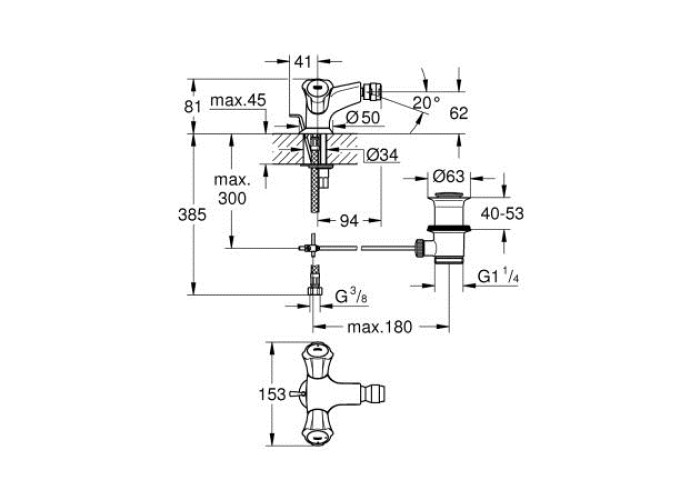 Двухвентильный смеситель для биде, металлические рукоятки, с теплоизоляцией, вентиль Longlife с резиновым уплотнением, литой излив с аэратором с шаровым шарниром, хром