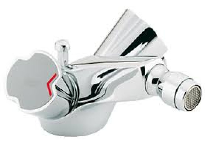 Смеситель на биде, двухвентильный. Вентили Longlife с резиновыми уплотнителями, аэратор, литой излив, донный клапан. Горизонтальный монтаж, хромированная поверхность.