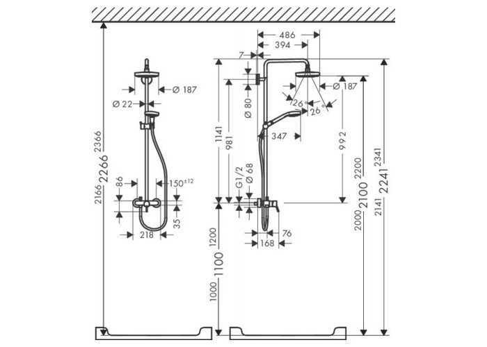 Угол кронштейна можно регулировать. Ручной душ на 2 режима струи: Дождь, Массаж.