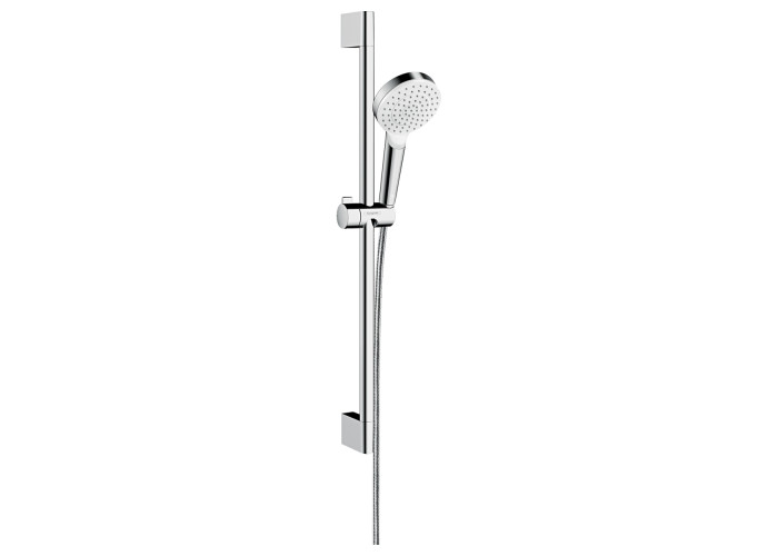 Душевой набор, тип струи: Rain, размер душевого диска: 100 мм, со стороны душа упорный подшипник, предотвращающий перекручивание душевого шланг, полностью хромированный держатель душ, максимальный расход воды (при 3 бар): 14 л / мин, ширина штанги 22 мм, хромированные настенные крепления из пластика