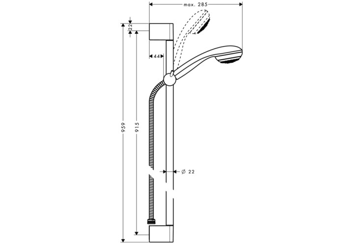 Crometta 85 Душевой набор, 0,9 м Тип струи: обычная струя, размер душевого диска: 85 mm, максимальный расход воды: 16 л/мин, пластина для виравнивания плитки (серая)