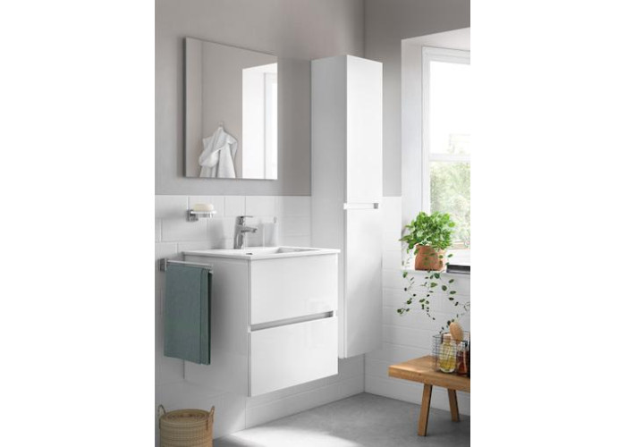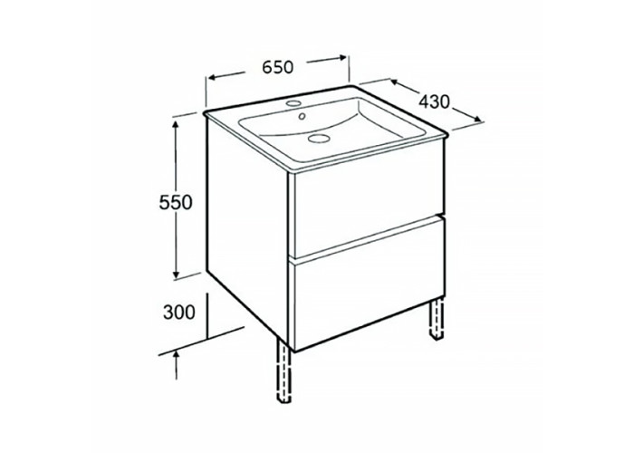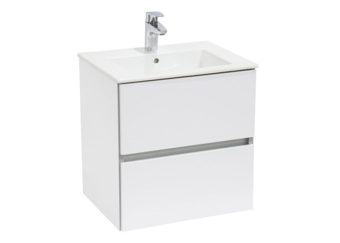 CUBE комплект: тумба 550х650х430 мм с 2 мя ящиками, без ножек, умывальник 650*430 мм, с отверстием под смеситель, с переливом, цвет - белый глянец.