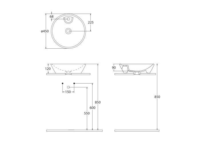DAMA di VENEZIA умывальник Ø 45см, с отверстием под смеситель, matt black