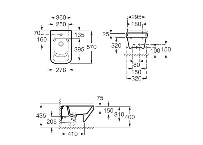DAMA-N биде подвесное, с отверстием под смеситель, с переливом