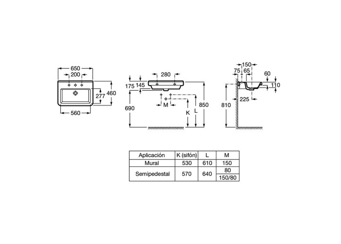 DAMA-N умывальник 65*46, с отверстием под смеситель, с переливом