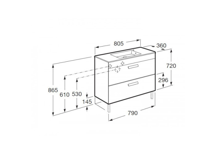 DEBBA шкафчик 80см, с 2мя ящиками, с умывальником, в комплекте с сифоном, белый