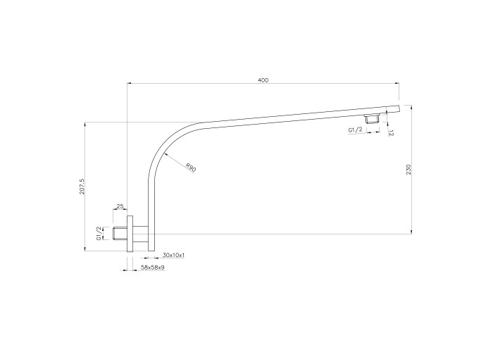 Держатель верхнего душа для настенного монтажа, размеры 30х10х400 мм, цвет хром, материал: латунь.