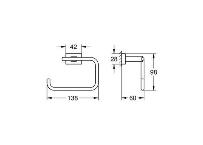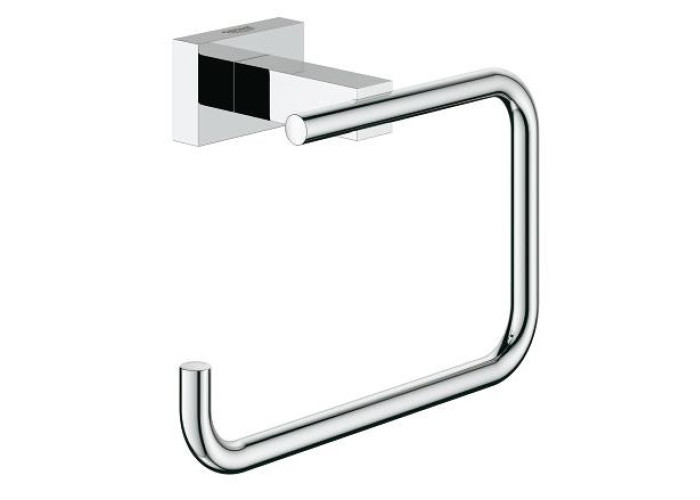 Держатель для туалетной бумаги Grohe Essentials Cube 40507001 изготовлен из прочного металла с хромированным покрытием, нанесенным по технологии GROHE StarLight® Technology, которое сочетается со всеми аксессуарами санузла и предупреждает образование коррозии. Держатель крепится на стену шурупами на необходимую высоту и, благодаря загнутому крючку, защищает туалетную бумагу от падений. Скрытое крепление сохраняет отделку санузла. На держатель нанесен фирменный логотип производителя.
